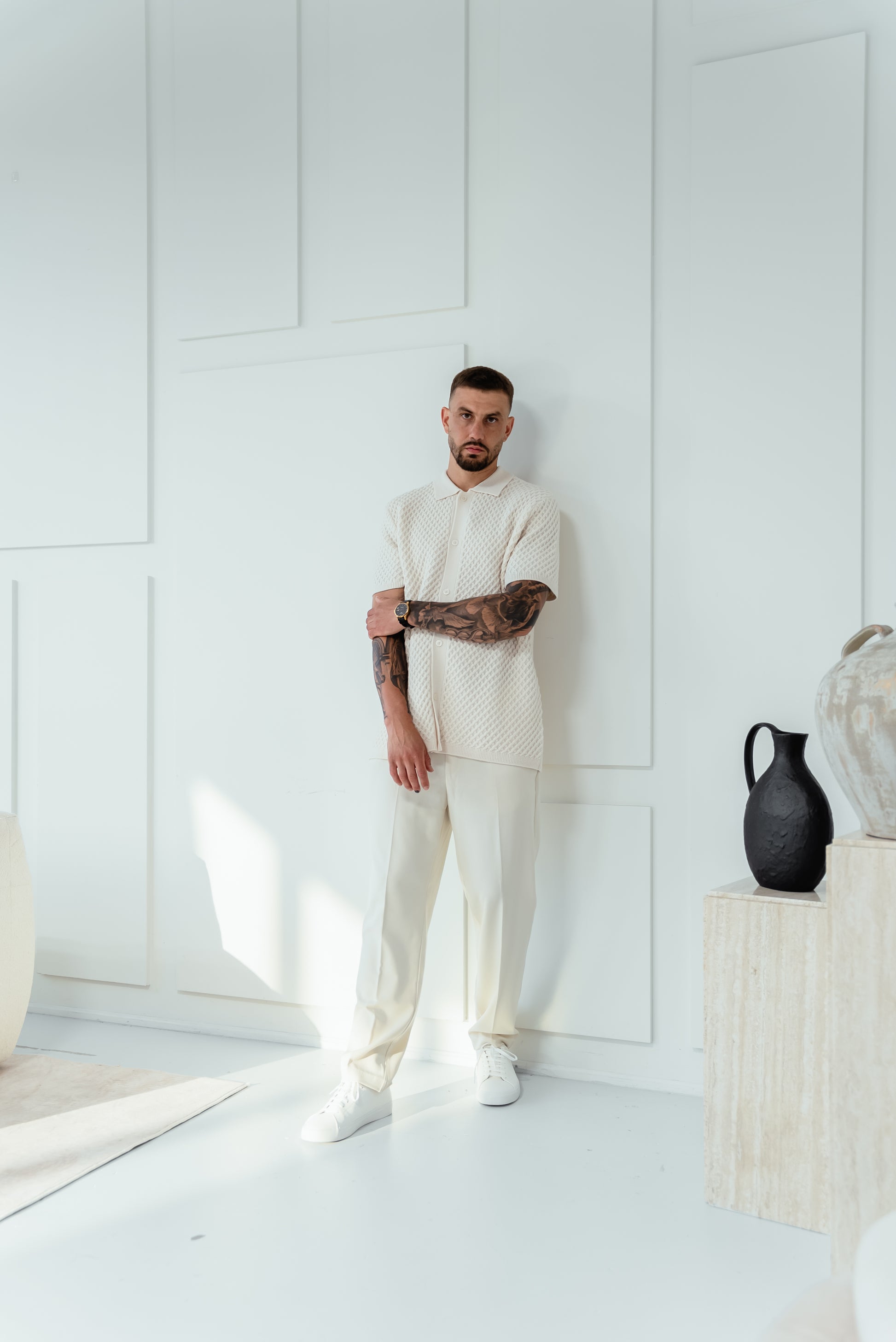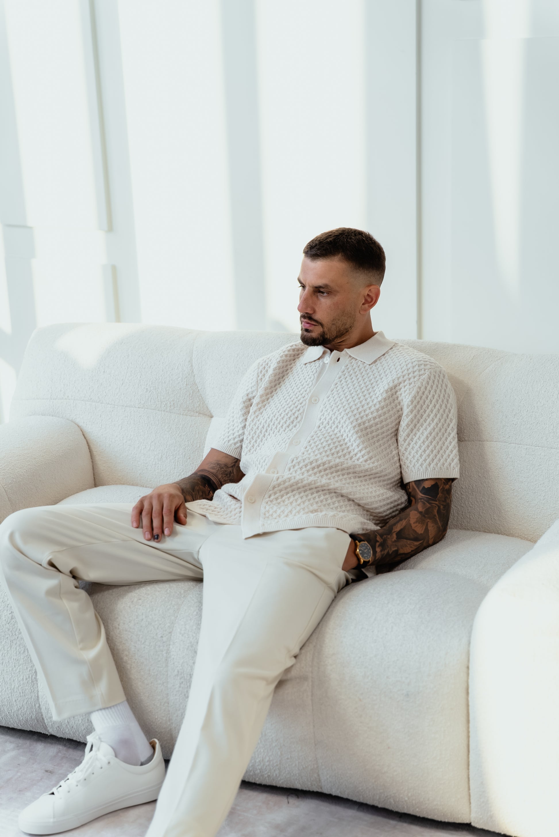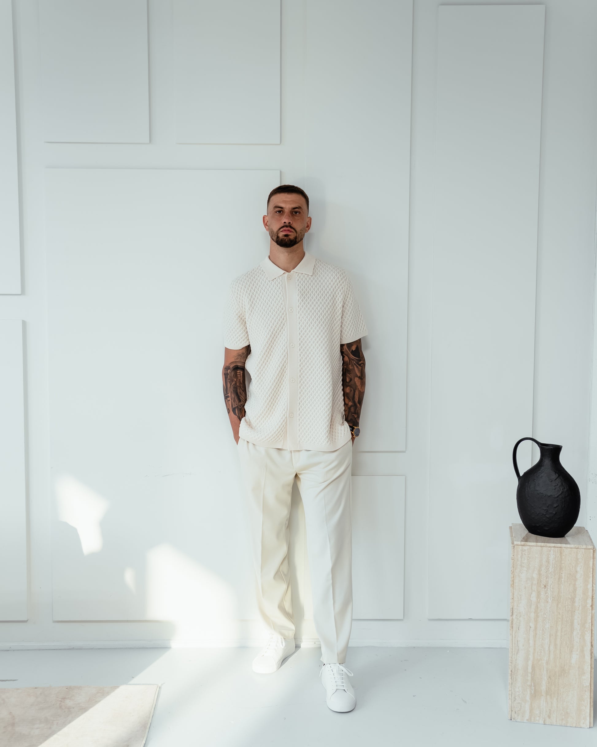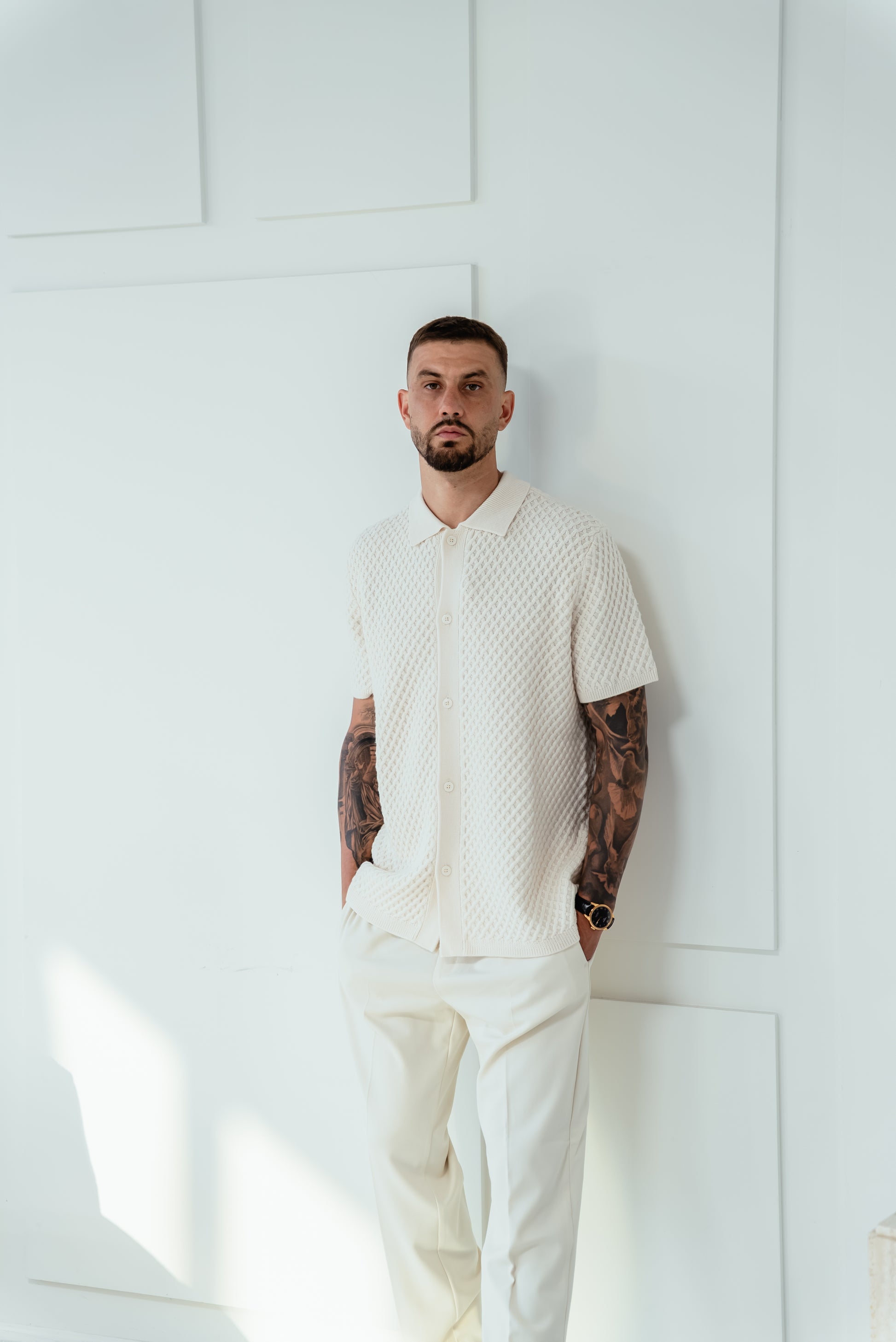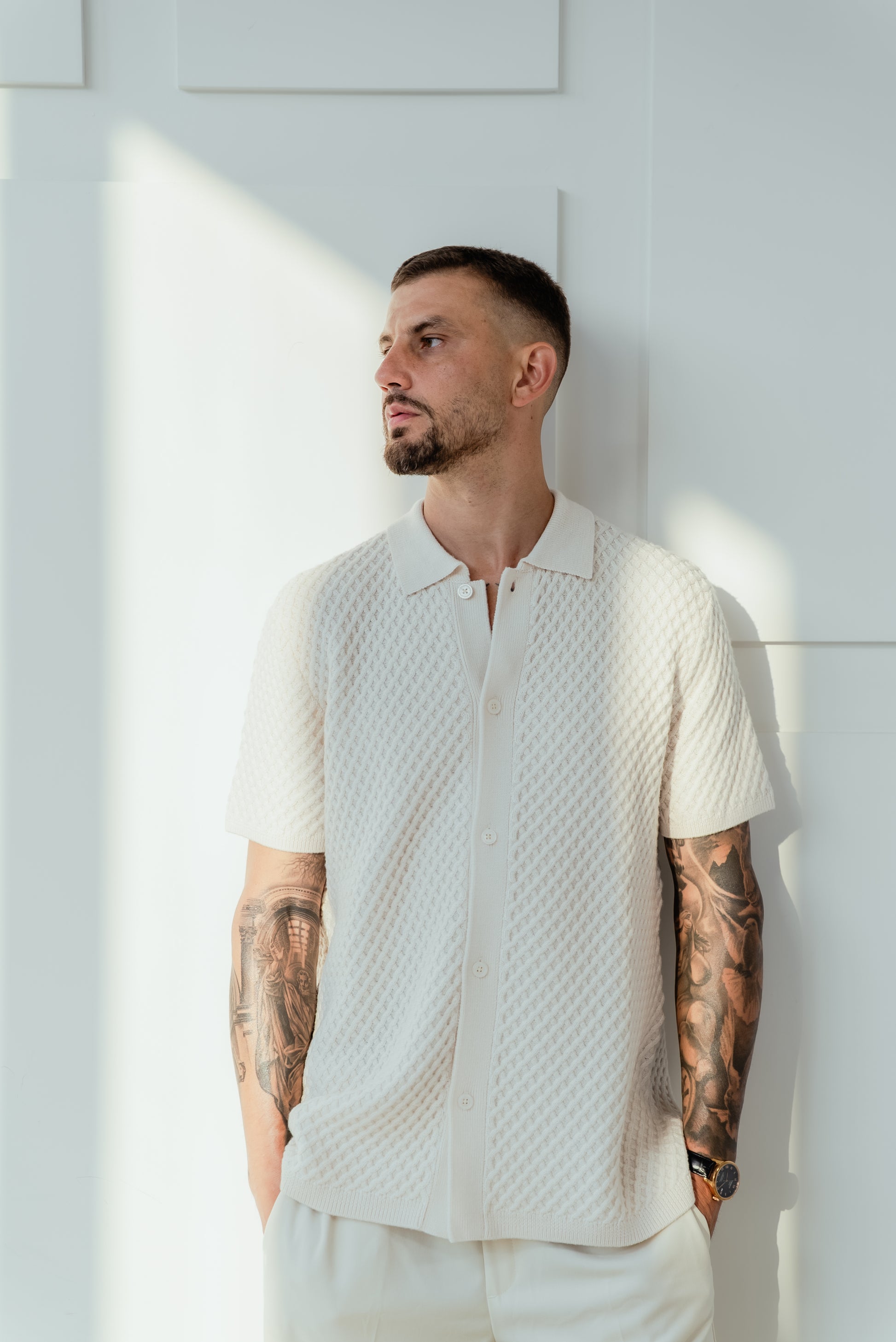 Crafted from thick Merino wool, this men's short sleeve classic button-down offers a fitted silhouette that balances comfort with refined style. Its superior fabric ensures breathability and durability, making it ideal for those seeking a sophisticated yet effortlessly stylish wardrobe staple.